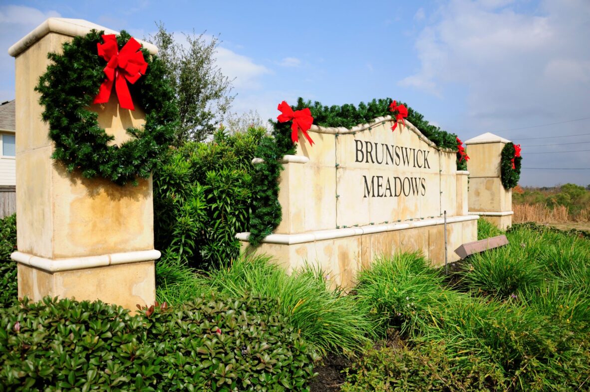 We provide lit garland and wreaths around monument walls that give your community both daytime and nighttime holiday decor. Our lumineers can also outline nameplates, walls, column tops, and flowerbeds with LEDs while using dazzling mini lights on bushes and trees.