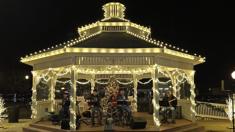 Our team can survey your community and decorate towers, windmills, arches, and fence lines with beautiful holiday lights.
